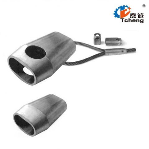 壓套機通過液壓為動力,結構緊湊、運行穩(wěn)定、噪音小、工作效率高。在不破壞鋼絲強度的前提下使軟金屬在模腔內充分流動,束緊鋼絲繩的鋼絲,通過鋼絲之間摩擦力達到成型的目的。